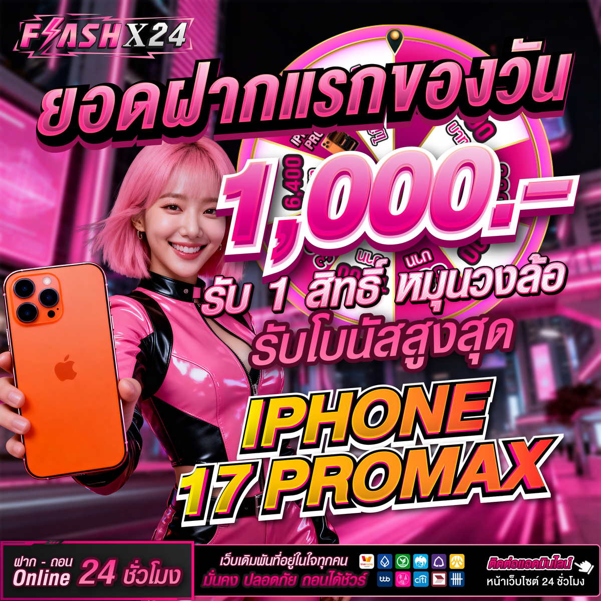 💗 ยอดฝากแรกของวัน 1000 บาท รับ 1 สิทธิ์ หมุนกงล้อ ลุ้นโบนัสสูงสุด IPhone 17 PROMAX จำนวน 1 เครื่อง