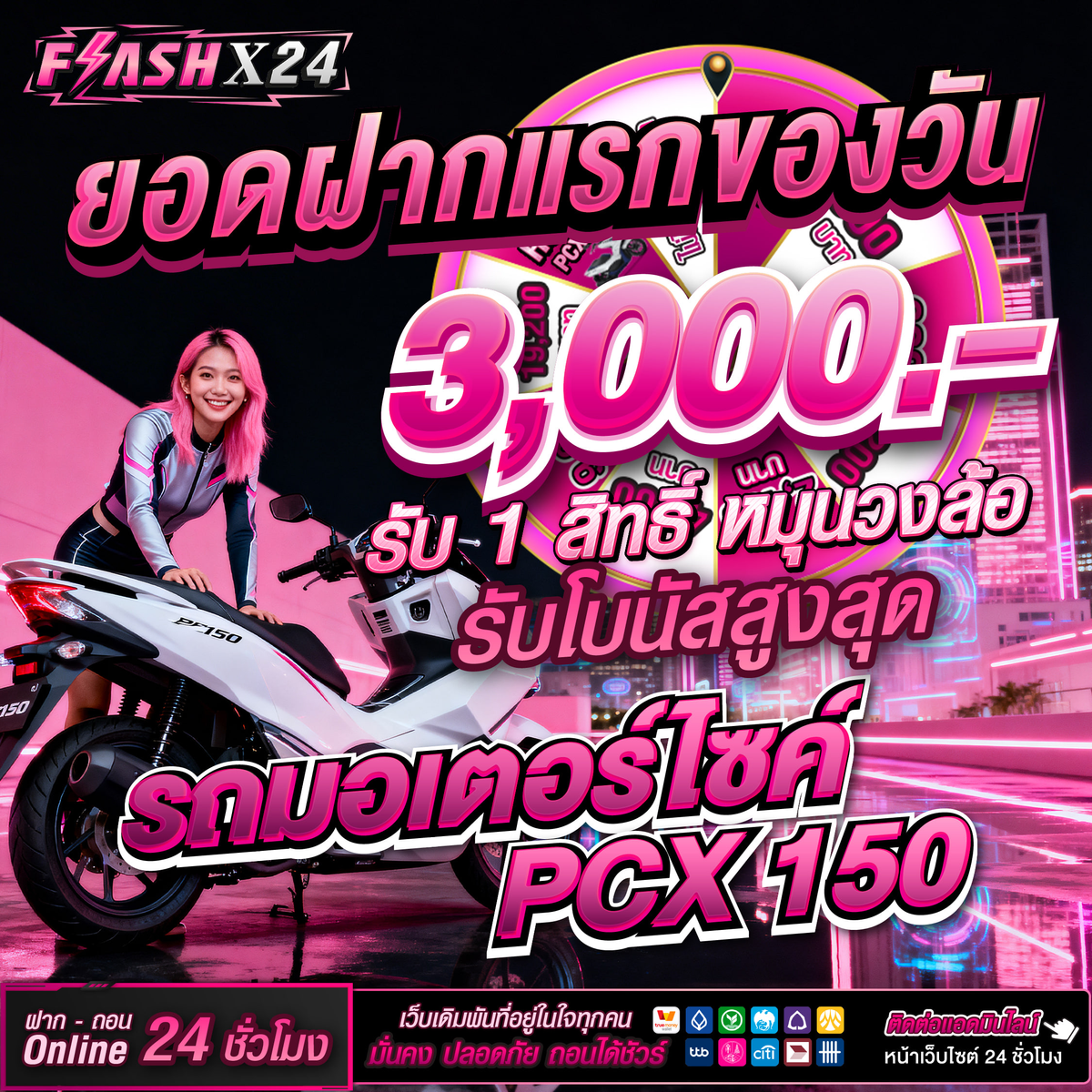 💗 ยอดฝากแรกของวัน 3000 บาท รับ 1 สิทธิ์ หมุนกงล้อ ลุ้นโบนัสสูงสุด รถมอเตอร์ไซค์ PCX 150